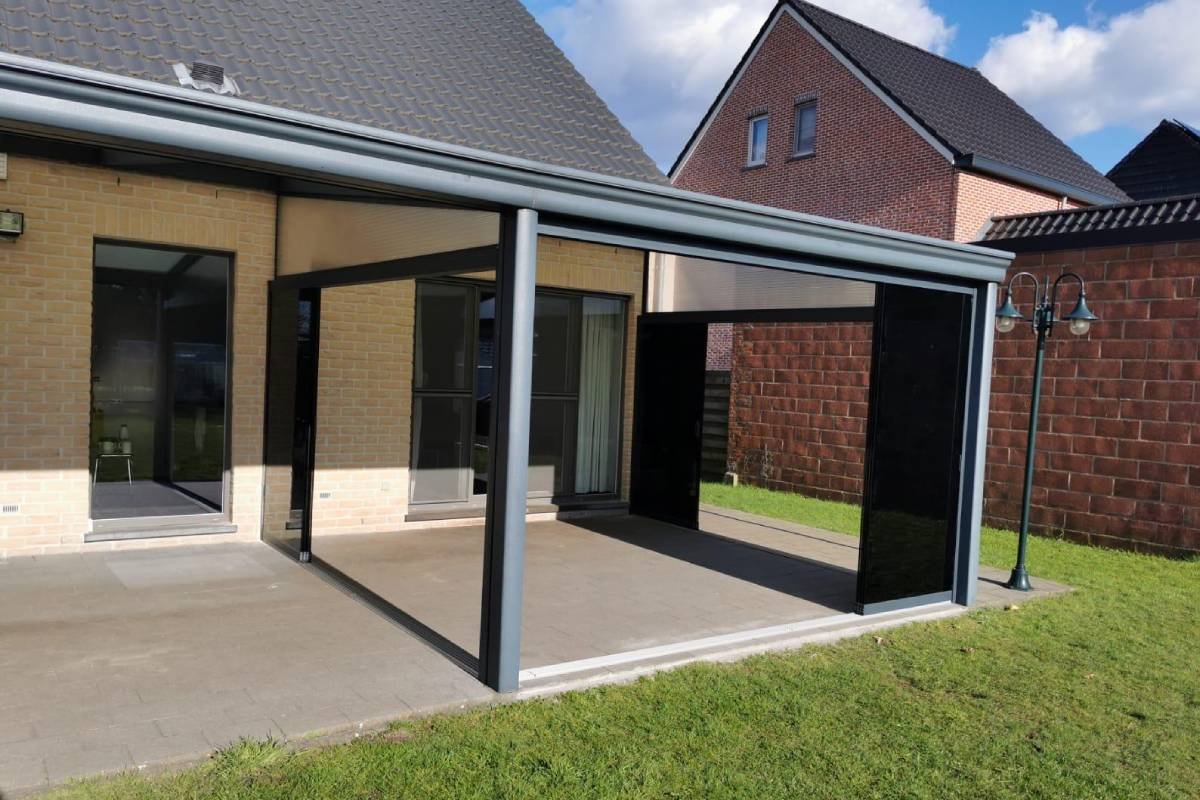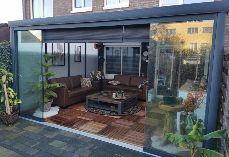 U kunt uw veranda uitbreiden d.m.v. aluminiumzijwand, spie (polycarbonaat,glas) polycarbonaat zijwand.